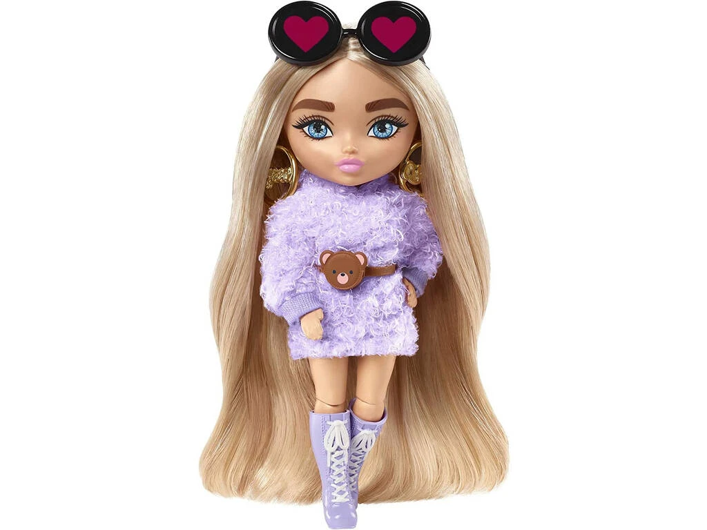 ¡Añade color a tu día a día! ¡Junto a la nueva Muñeca Barbie Extra Mini Rubia con Sudadera Morada de Mattel!