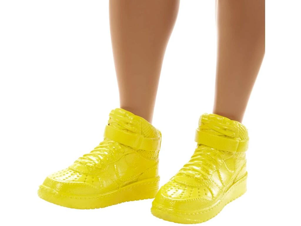 Incluye: 1 muñeco articulado Ken con camiseta negra con estampado bandana, pantalón azul con estampado bandana y un par de deportivas altas de color amarillas.