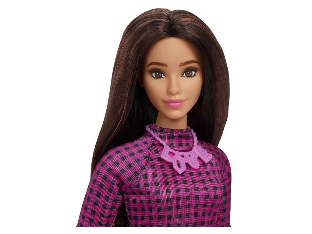 ¡Descubre a una nueva y estilosa muñeca! ¡Pásalo en grande junto a la nueva muñecaBarbie Fashionista Vestido Rosa a Cuadros de Mattel!