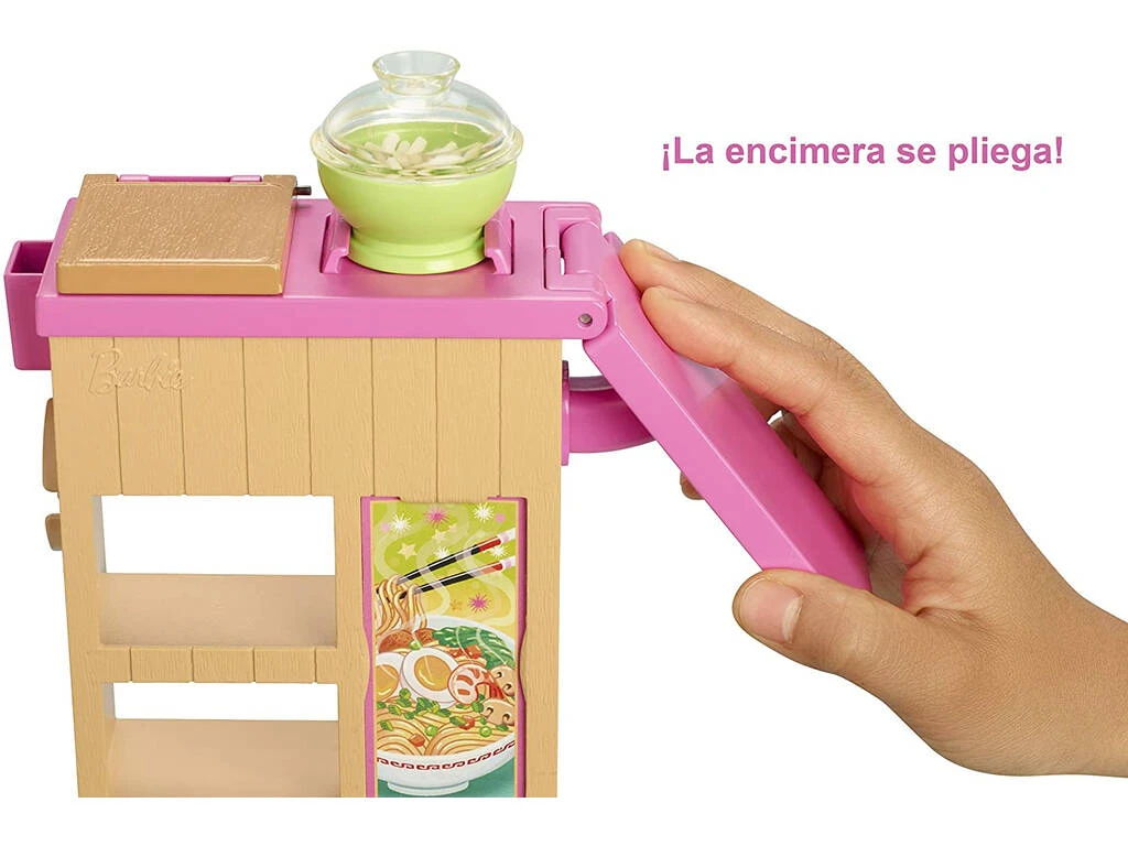 ¡Prepárate para cocinar rica comida asiática junto a tu muñeca favorita! ¡Gracias a esta genial Barbie Noodle Bar de Mattel!