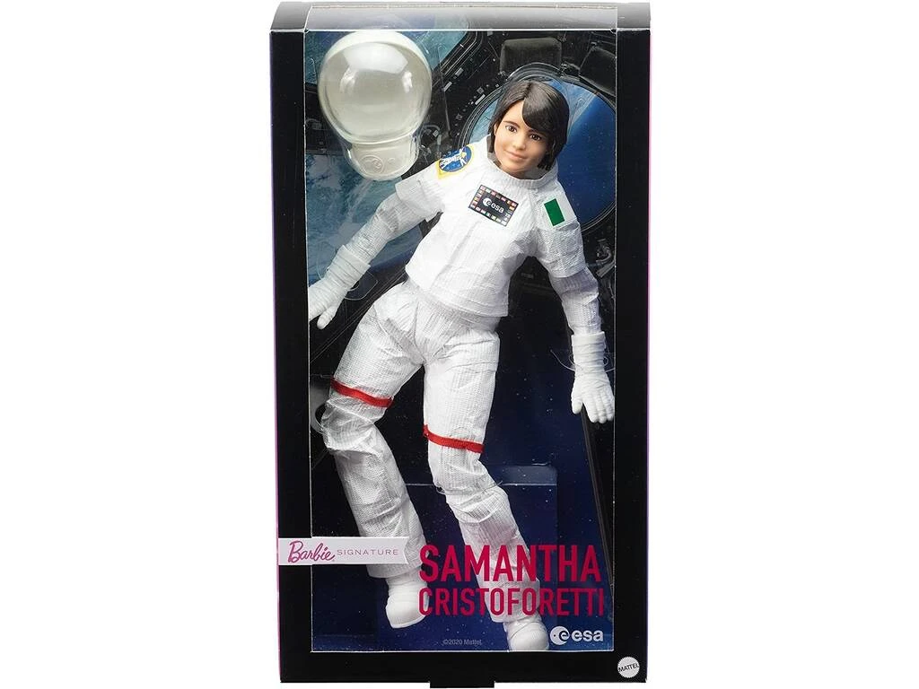 Incluye: 1 muñeca Barbie Samantha Cristoforetti con traje de astronauta blanco, casco de astronauta con el logo de Barbie y botas espaciales de color blanco, 1 peana de exposición para la muñeca y 1 certificado de autenticidad.