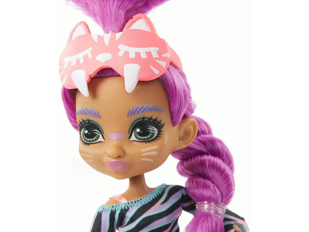¡Disfruta de una fiesta llena de estilo, color y amistad! ¡Al llevarte esta ingeniosa Muñeca Cave Club Fiesta de Pijamas Roaralai de Mattel!