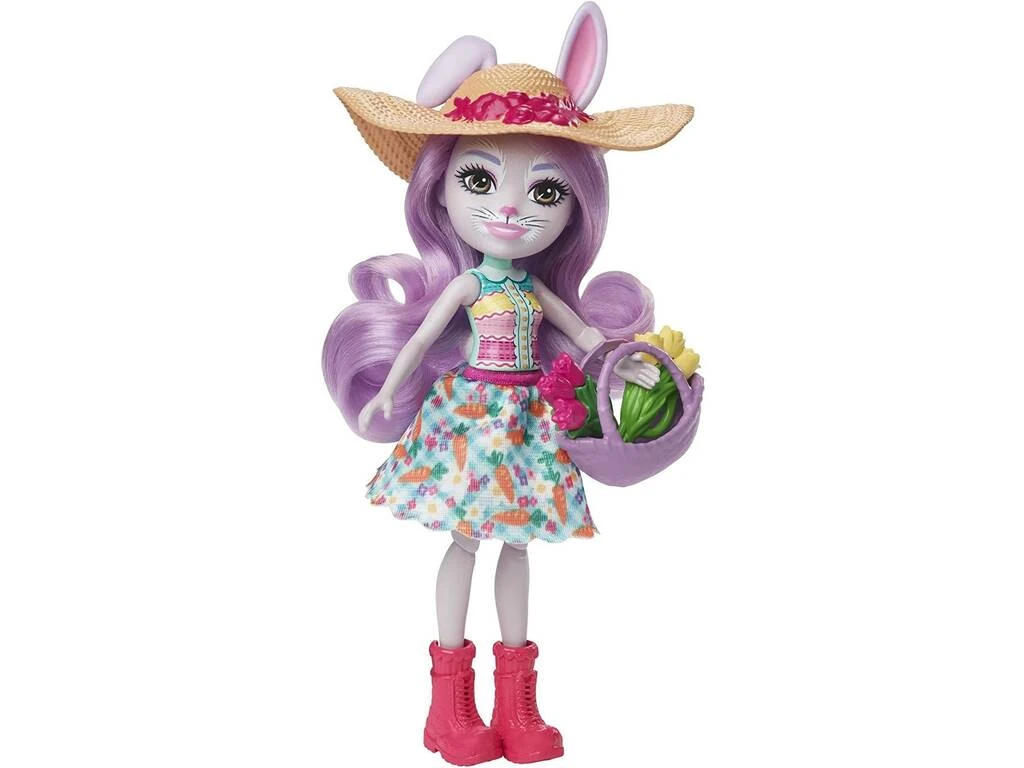 Incluye: 1 muñeca Becker Bunny con falda azul y blanca a cuadros con zanahorias, sombrero y un par de botas fucsia, 1 mascota conejito, 3 puestos de mercado de colores diferentes, 2 cestas, flores, frutas, verduras y muchos más accesorios de juego.