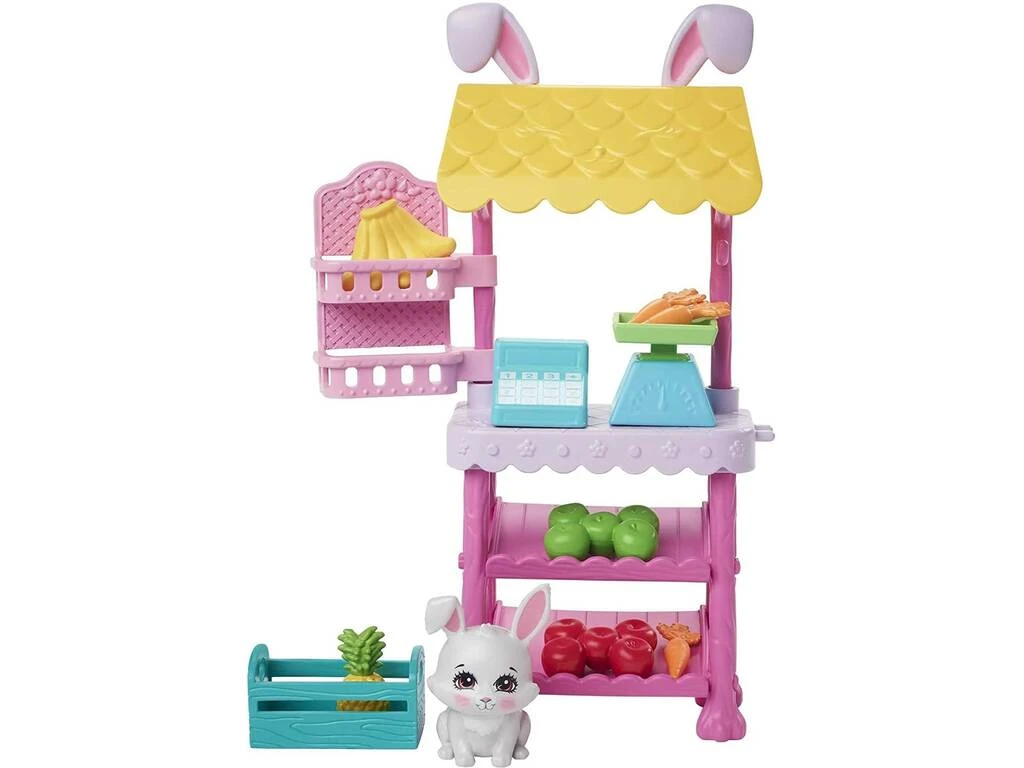 Consigue este completo set que incluye todo lo que necesitas para disfrutar de tu propio mercado rural, lleno de los productos naturales más frescos y de la zona. Ayuda a la mágica Bunny y su inseparable mascota en el montaje del mercado, los clientes están a punto de llegar a por sus frutas y verduras preferidas.