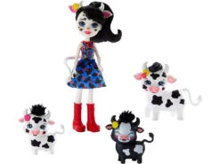 Incluye muñeca Cambrie con mono con falda y botas extraíbles, vaca Ricotta y los becerros Mac y Cheese diseñados con un aspecto adorable.