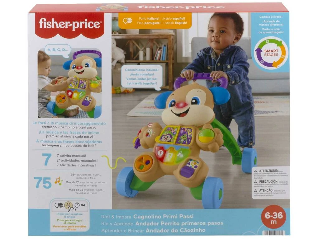 Incluye: 1 andador infantil Perrito Primeros Pasos con luz, actividades y sonidos en varios idiomas.
