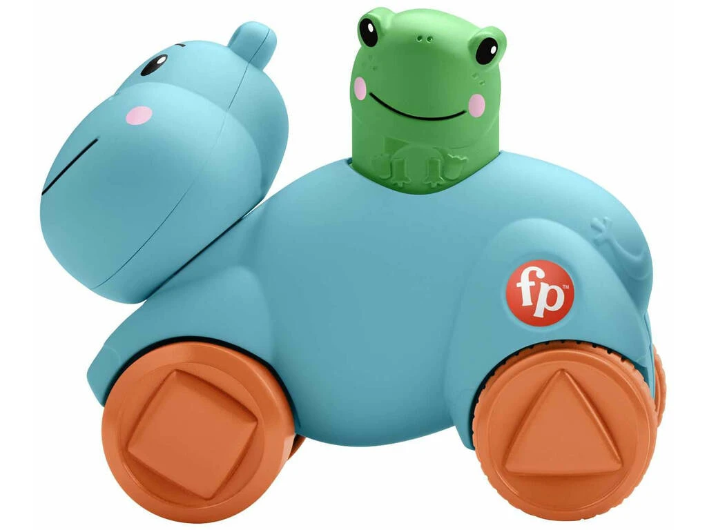 Incluye: Un balancin con 3 figuras de sapo jirafa y hipopótamo, un juguete con forma de hipopótamo y un leon en una bola rodante.