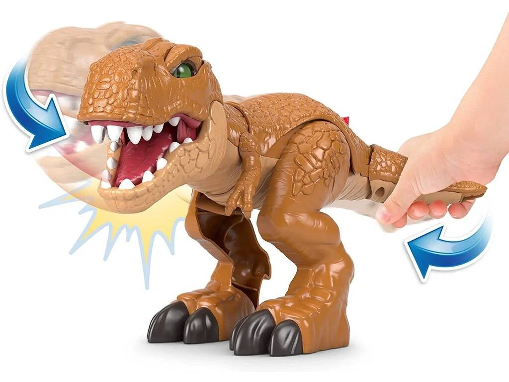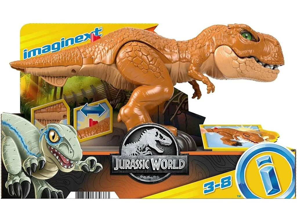 Incluye: 1 figura T-Rex Superación de color marrón con control de cola y botones para mover boca y ojos.