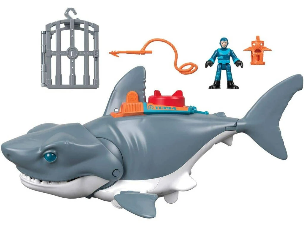 Prepárate para tomar el control de un tiburón gigante, ayuda al buzo en su nueva misión y disfruta de las poderosas mandíbulas en un reto sin igual. Utiliza las herramientas incluidas para jugar y crear la aventura, el tiburón puede abrir y cerrar su boca, mientras que la figura pude ser devorada o colocada a lomos del gran animal.