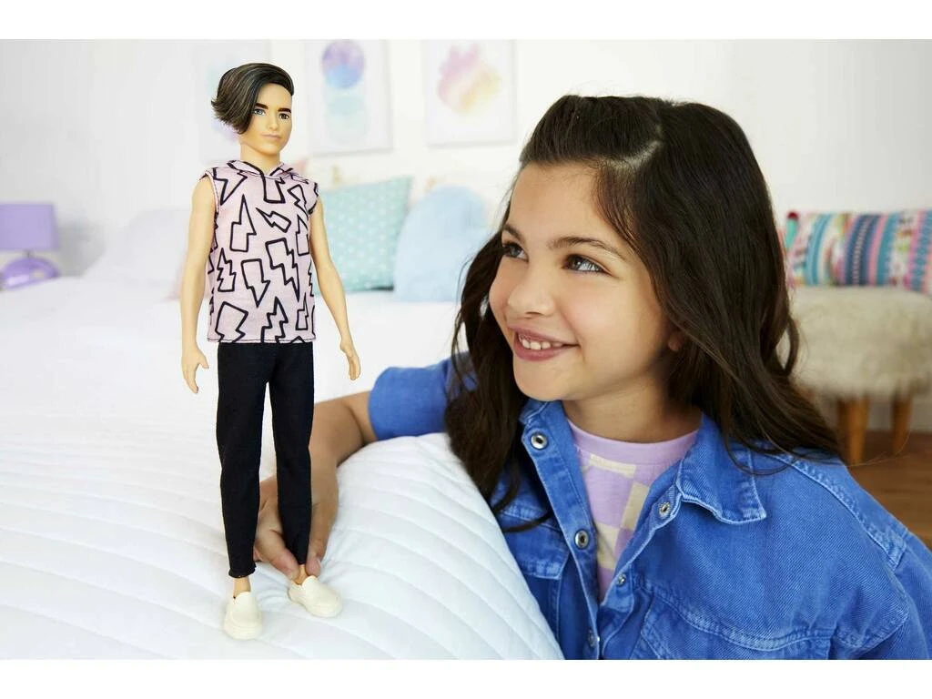 ¡Te presentamos a un nuevo y estiloso muñeco para jugar y coleccionar! ¡Pásalo genial junto a este muñeco Ken Fashionista Camiseta Rayos con Pelo Enraizado de Mattel!