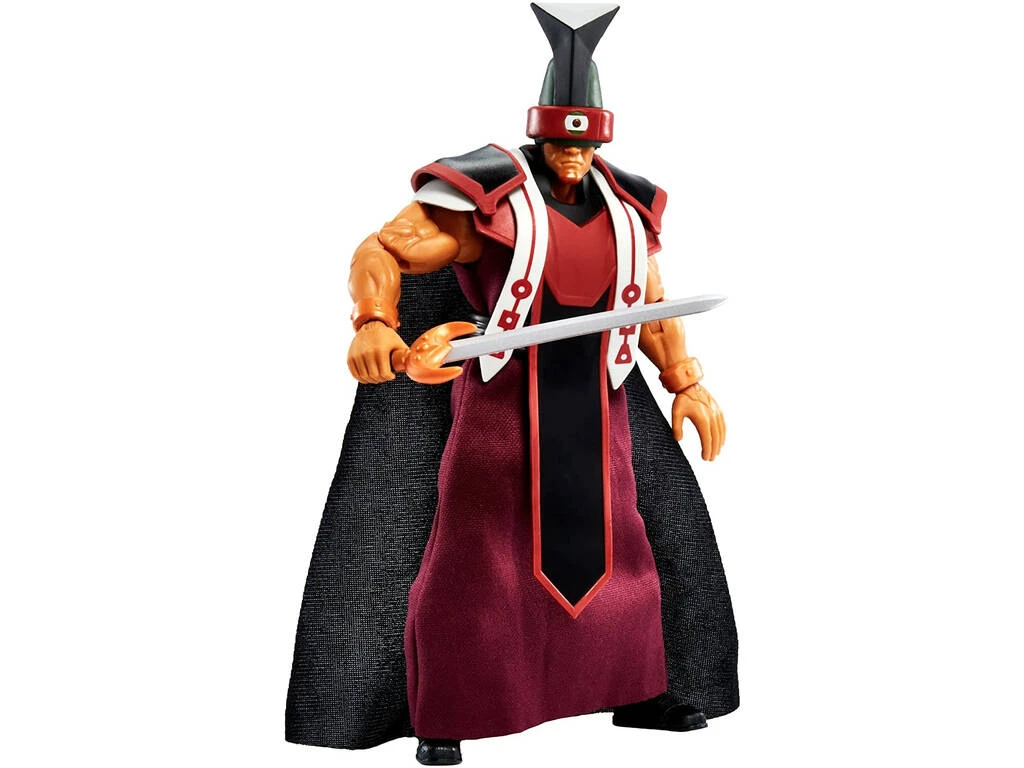 Incluye: 1 figura de acción Tri-Klops, 1 cabeza de repuesto, 1 par de manos de repuesto, 1 toga, 1 capa de tela y 1 espada para la figura.