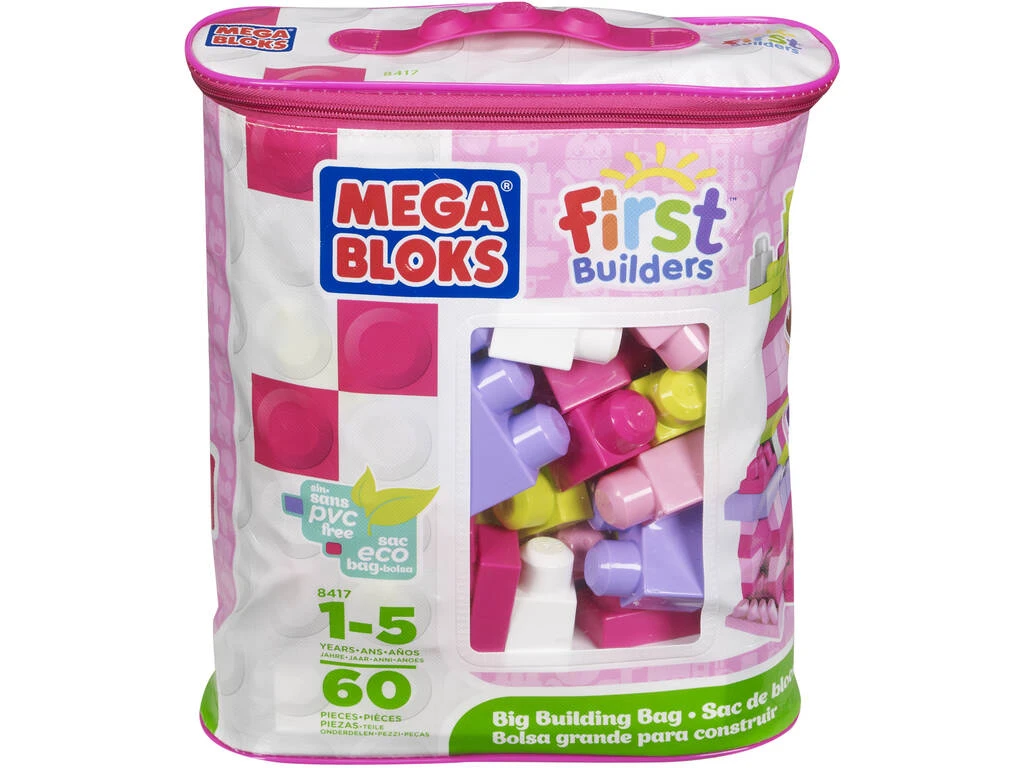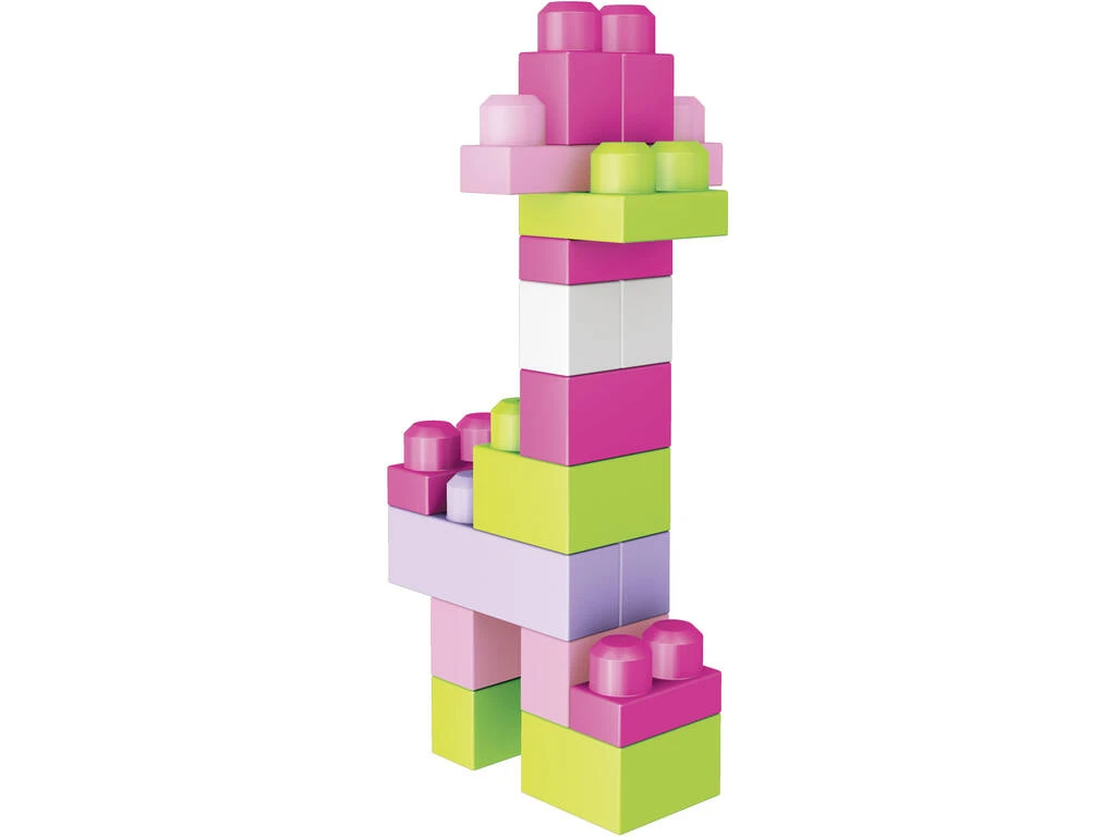First Builders Big Building Bag de MegaBloks deleitará a su hija con sus brillantes bloques rosados y morados. Acentuados con un brillante color amarillo y lavanda, estos grandes bloques son perfectos para crear castillos coloridos, torres hermosas e imaginar enigmáticas aventuras.