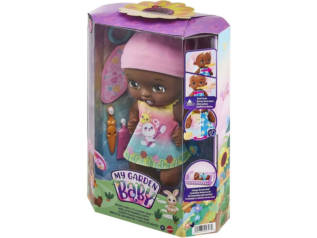 ¡Cuida y quiere a este mágico bebé! ¡Disfruta de todas las opciones de juego que aporta este My Garden Baby Bebé Feliz con Orejitas y Cepillo de Dientes de Mattel!