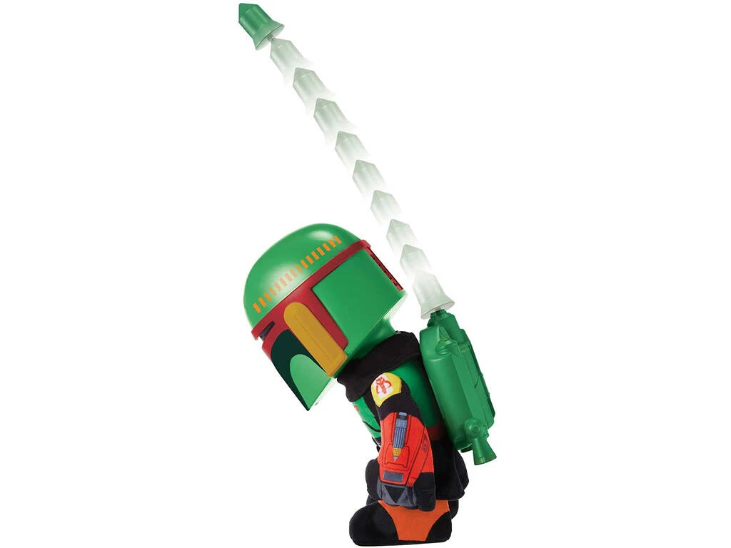 Incluye 1 muñeco peluche con cabeza de plástico Boba Fett con mochila Lanza Cohetes de goma y 1 cohete de goma.