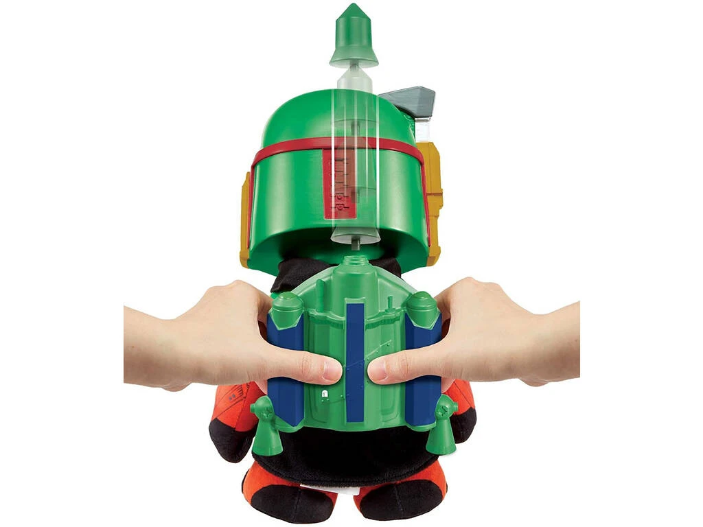 Toma el control de un guerrero de otra galaxia y su potente mochila propulsora lanza cohetes, consigue este divertido peluche con cabeza de plástico, con un aspecto a todo color y una genial función que hace que Boba Fett repita todo lo que dices mientras pulsas su mano. ¡Presiona su mochila propulsora y lanza un cohete a toda amenaza al trono! ¡Recorre la galaxia en busca de nuevas aventuras!